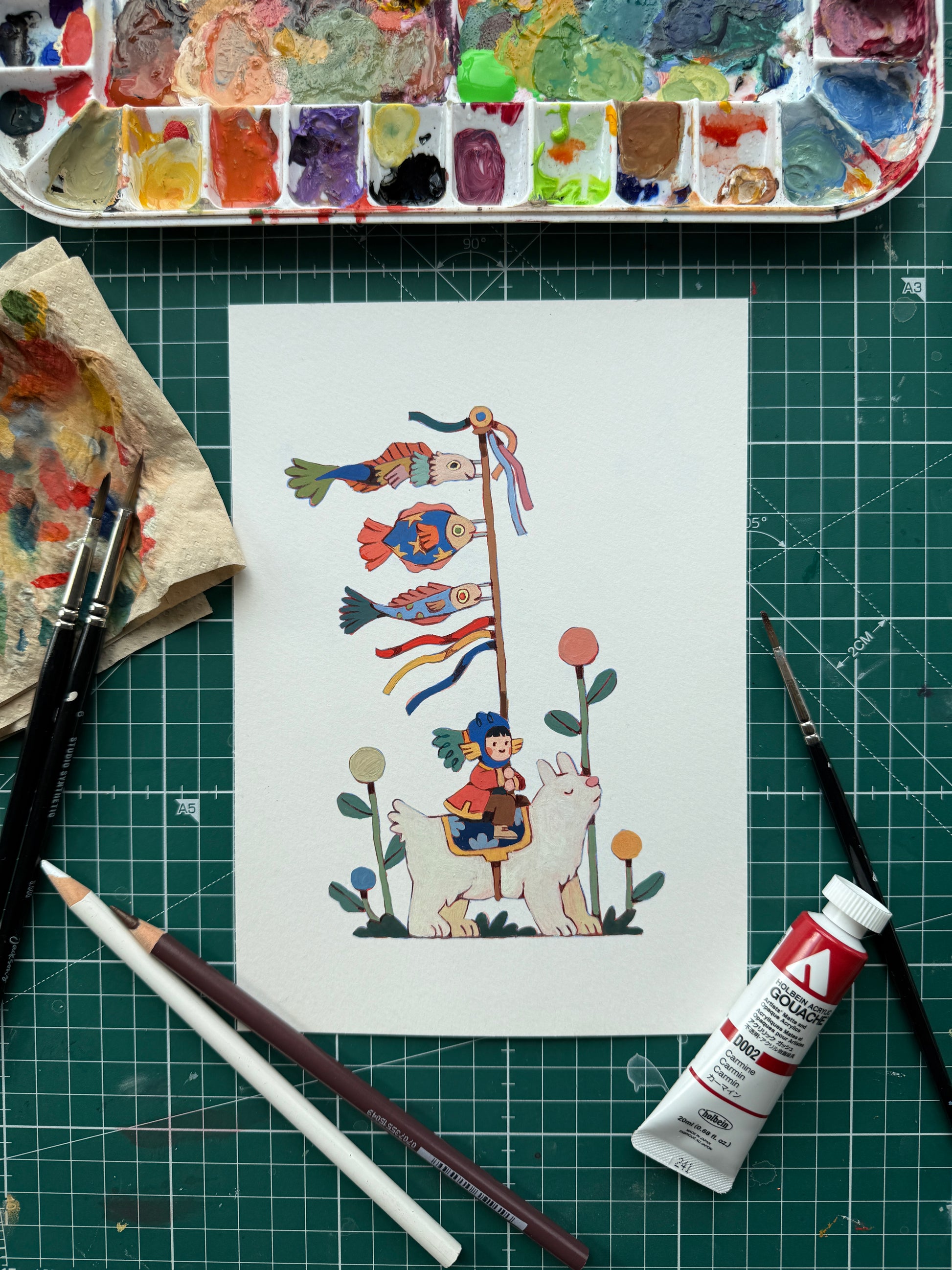 Original painting, Holbein acrylic gouache on 300gsm hot pressed watercolour paper.