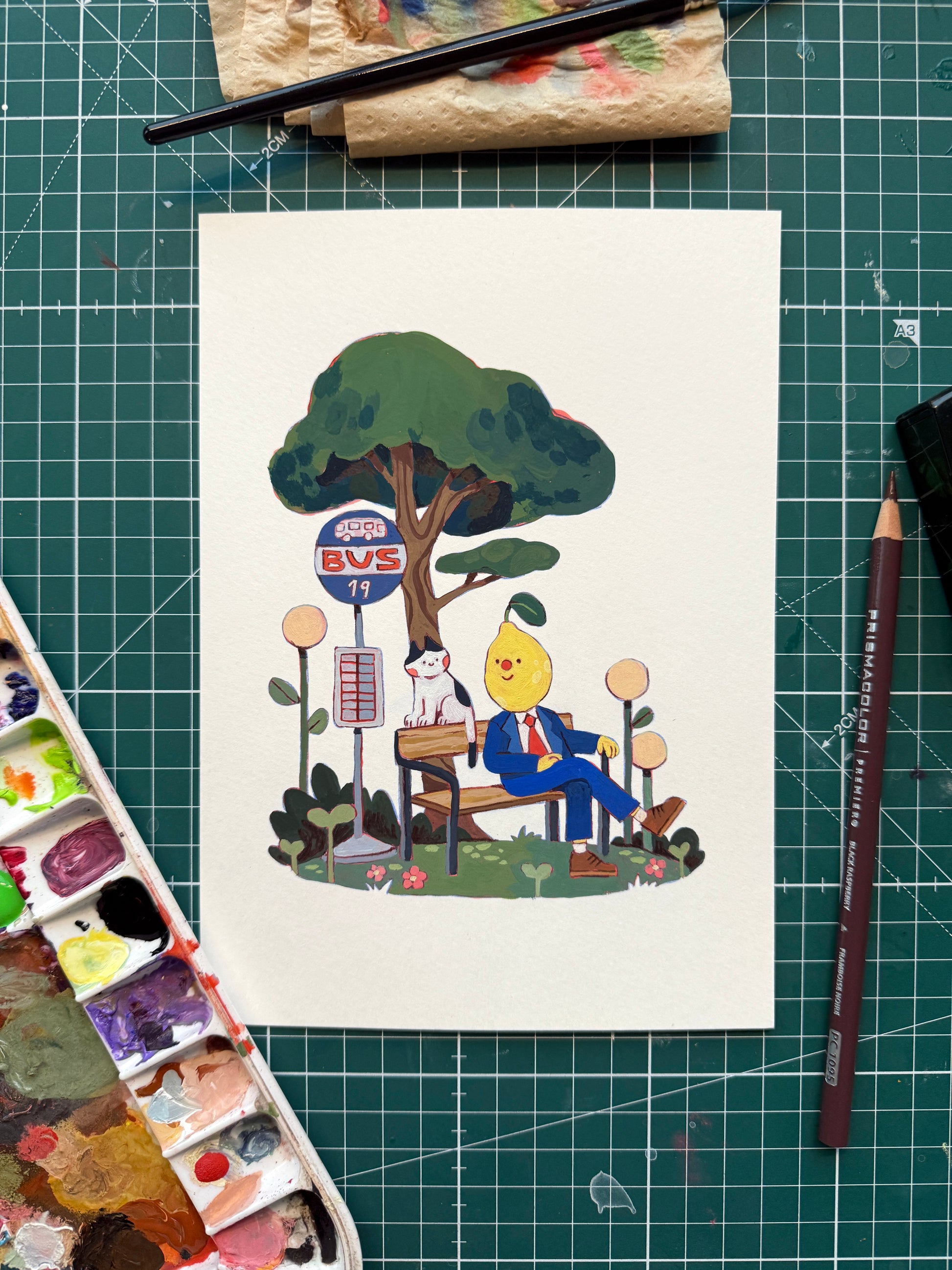 Original painting, Holbein acrylic gouache on 300gsm hot pressed watercolour paper.